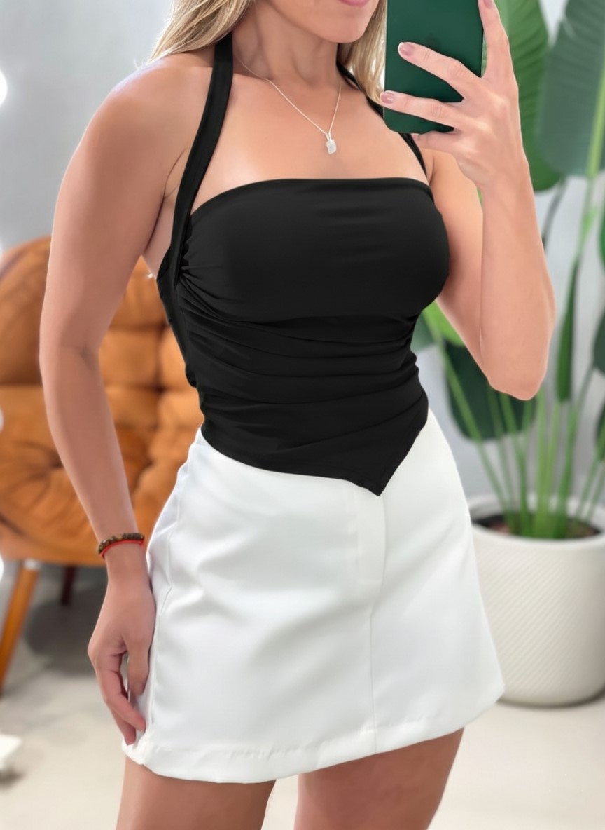 Cropped em Suplex Frente Única de Bico com Plissado Lidia Ref. 1869